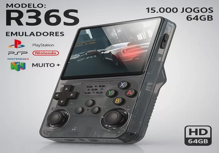 🎮 Mini Console Portátil R36S – 64GB | Tela IPS 3,5" | +15.000 Jogos na Palma da Sua Mão!
